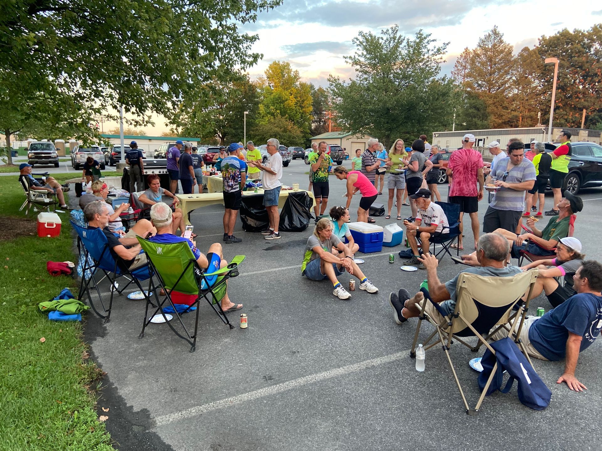The Grill 'n' Chill, one of our most popular activities, takes place periodically on Monday evenings after the Monday Night Rides that leave from the Velodrome parking lot. Look for monthly postings on Meetup, May through August. The club provides hamburgers, hot dogs, water, and occasional other items. Participants are encouraged to bring a side dish, beverage, or dessert to share. This is a great way to connect with your fellow club members.